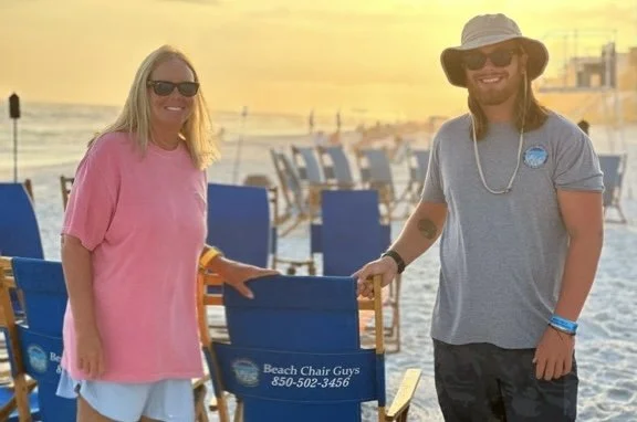 We are The South Walton Beach Chair Guys. Our team currently consists of the mother son duo of Stephanie and Hunter Davis. We took over the company in February of 2020, and it has been an incredible experience.